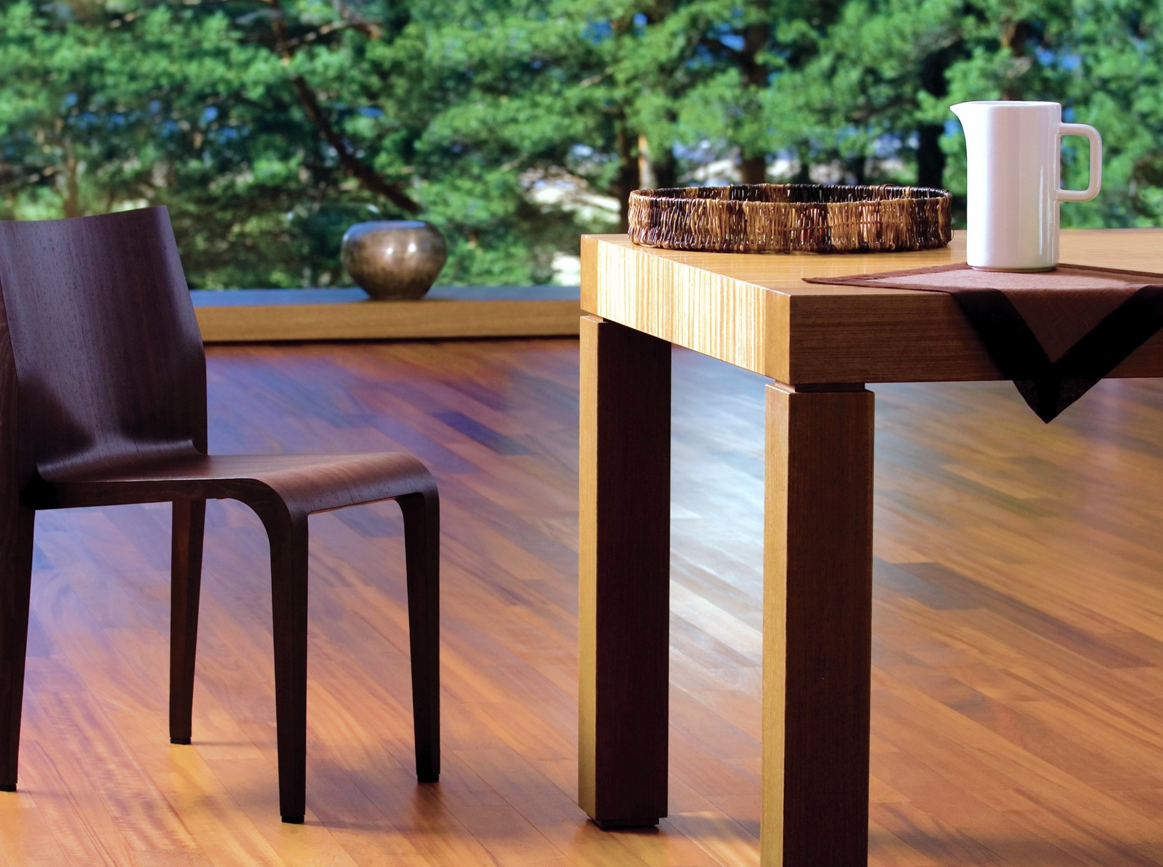 Interjers piedāvā atsevišķas dzīvojamās un guļamzonas ģimenei ar diviem bērniem. Interjerā izmantotie materiāli ir masīvkoks, tumši pelēks un balts finierējums.