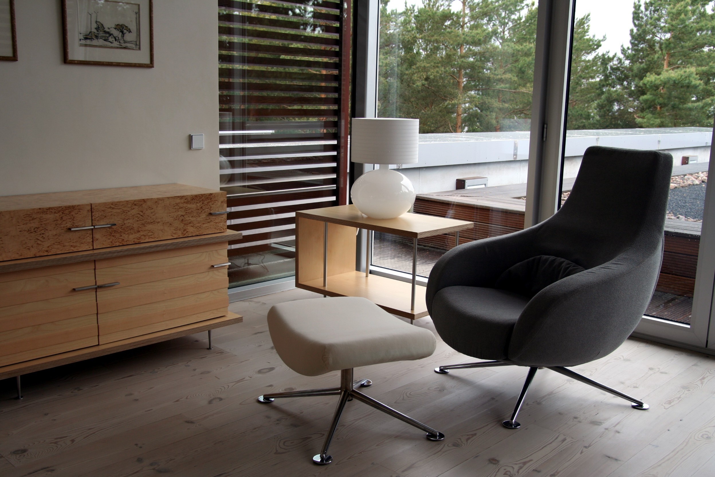 Anna Barons veidots dizains, ražotas mēbeles un interjers ģimenes privātmājai Rīgas pievārtē.