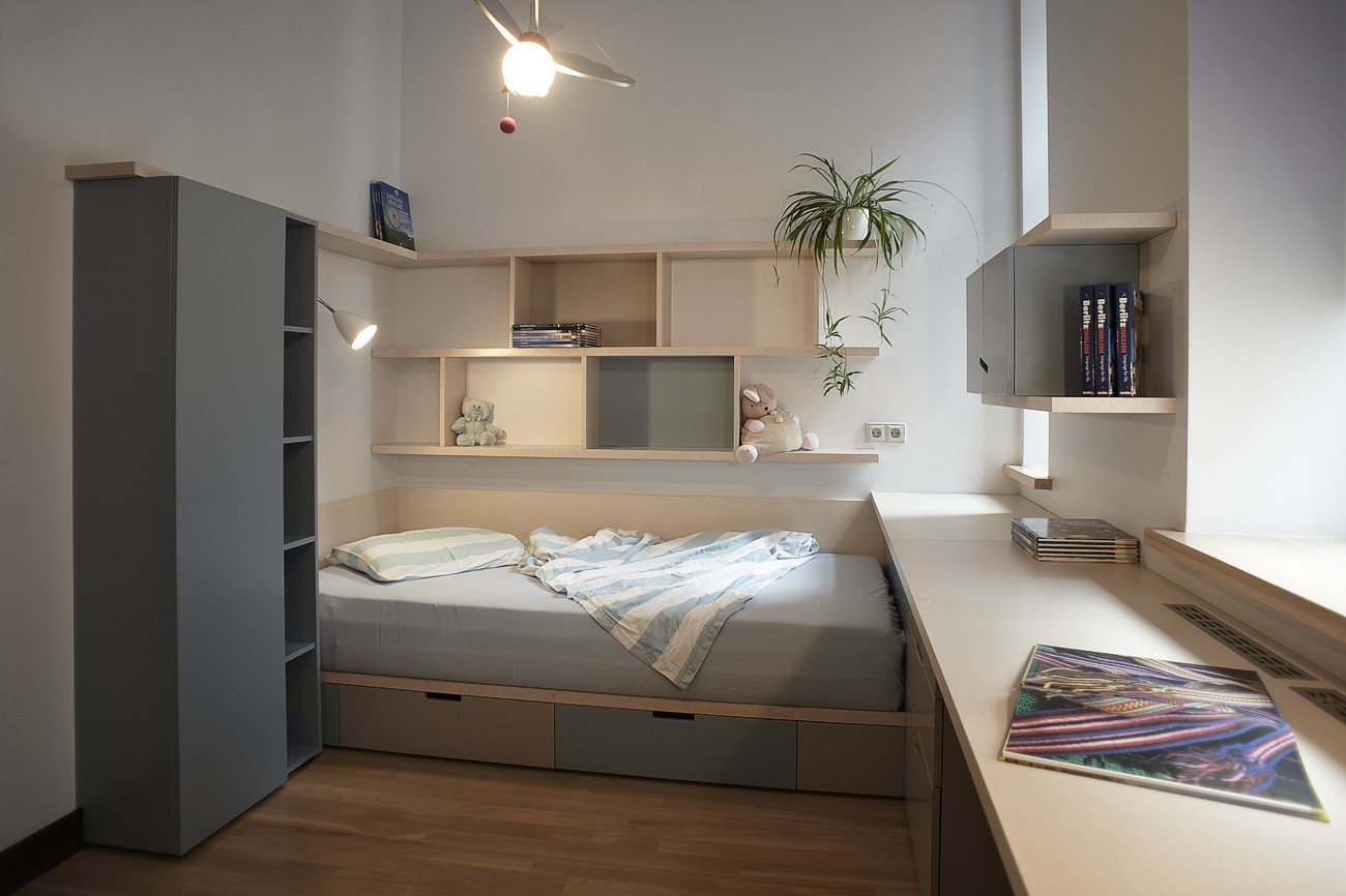 Bērnistabu iekārtojums veidots tā, lai tās būtu viegli transformējamas kā piemērotas dzīvojamās zonas, bērnam augot lielākam.
